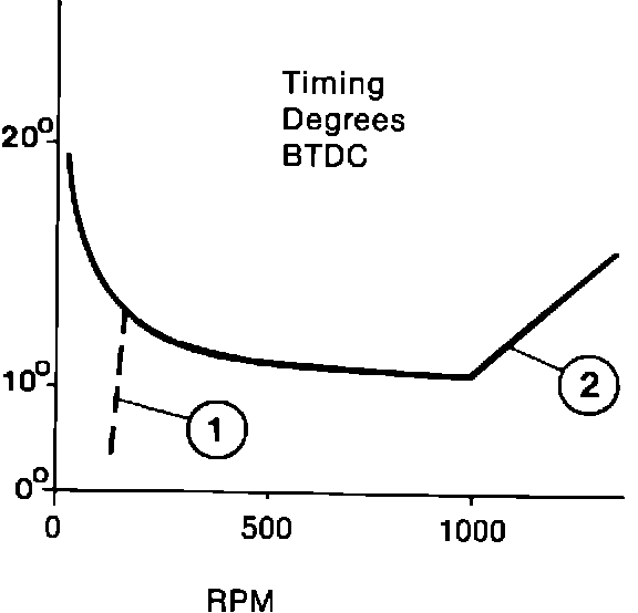 Starting is activated via terminal 50 as long as the starter is operated. As soon as the engine has started and the ignition lock goes back to terminal 15, the timing angle is moved into the area of normal engine idle timing. Above idle speed, normal centrifugal and vacuum timing takes place.