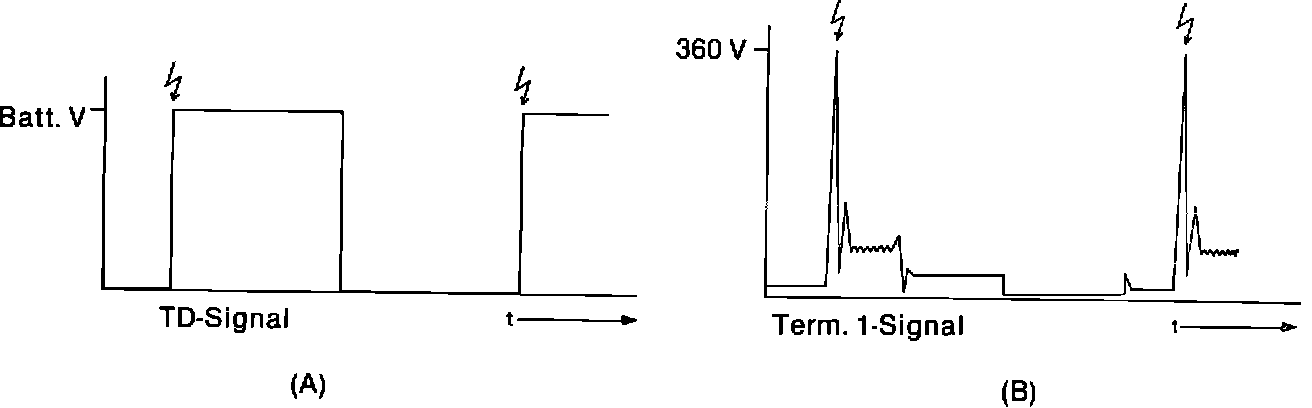 The TD connection has been introduced on the TSZi-S system for interference suppression. The square-wave signal shown here is easier to process electronically and emits no interference as opposed to the signals of terminal 1.