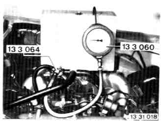 - Install pressure tester 13 3 060 with connecting line and T-adapter 13 3 064 in the fuel feed line - in front of fuel pressure regulator.
