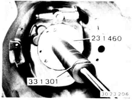 - Press grooved ball bearing on to input shaft and into case front section with Special Tools 231 007,23 1 000 and 23 1 006.
