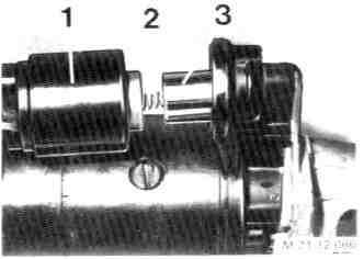 - Takeoff solenoid (1) and spring (2).