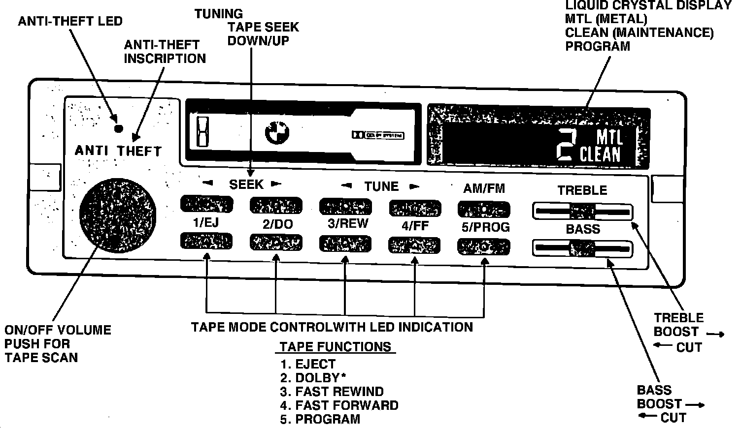 5. TAPE EJECT 1/EJ If you wish to return to the radio mode press the eject "EJ" button. If tape does not fully eject after returning to the radio mode, press "EJ" for three seconds to eject tape.