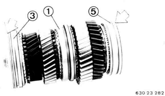 IMPORTANT INFORMATION!Modified operating sleeves, synchromesh rings and gear wheels since 5.85 Check installed position of operating sleeves and synchromesh rings.
