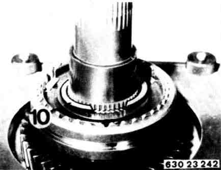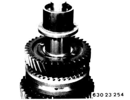 NOTE: Since 5.85: Stepped end of operating sleeve must face the first gear wheel.