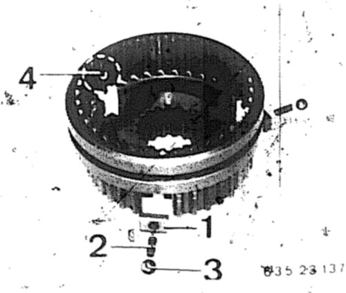 Thrust pieces (1), spring (2) and balls (3) in weaker version.