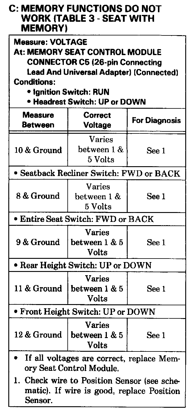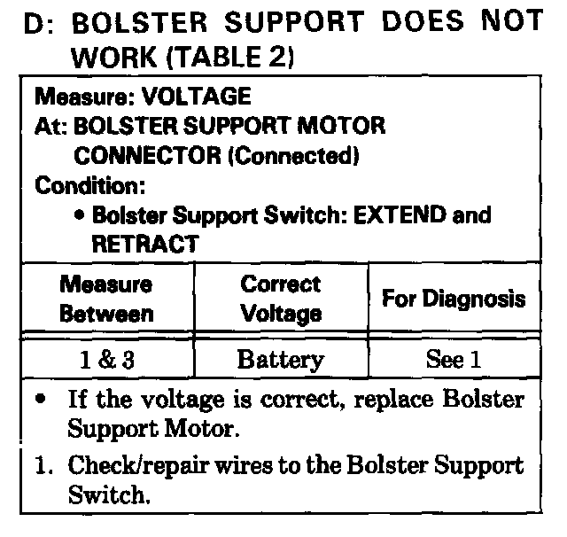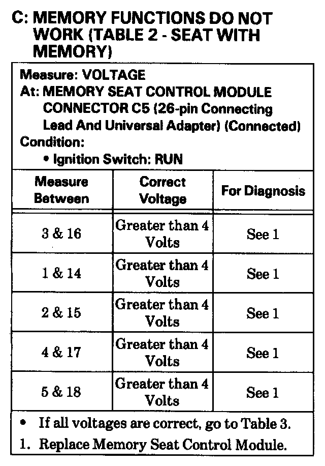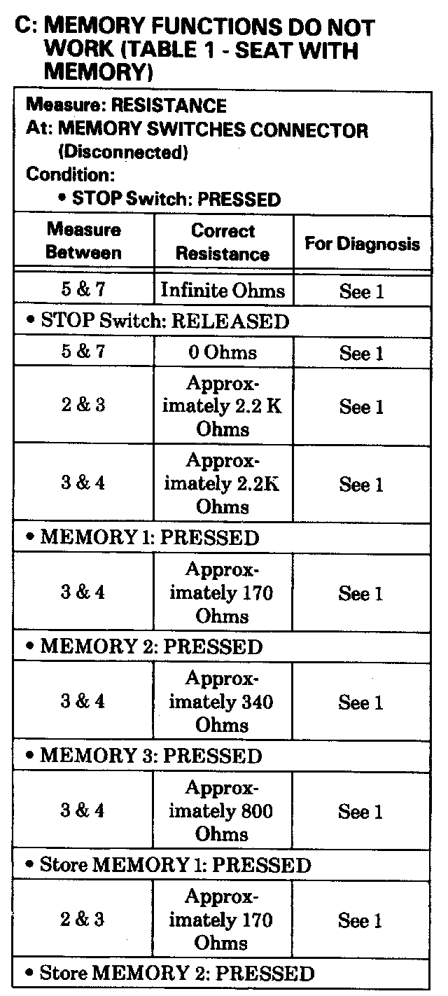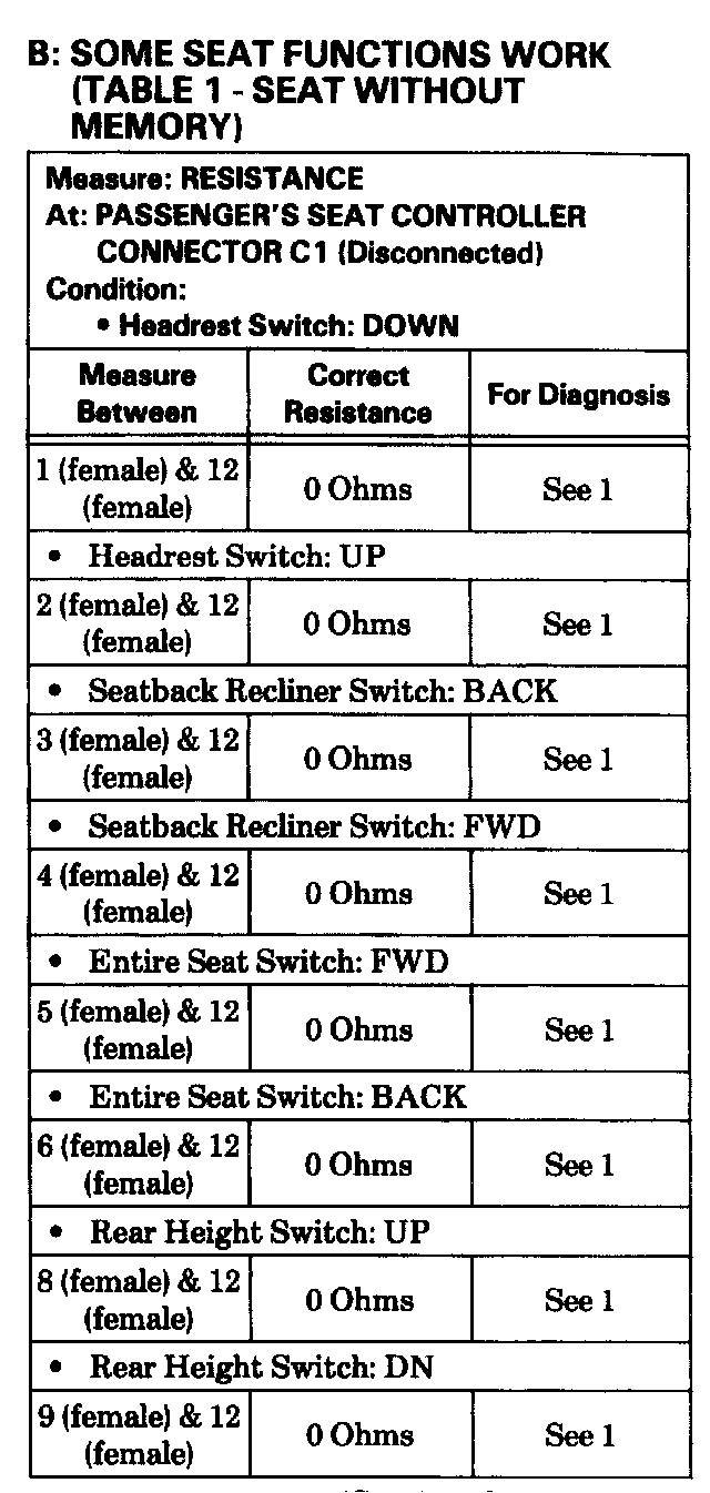 1. If both Power Seats do not operate, check Fuse 4 and the power lead to the splice.