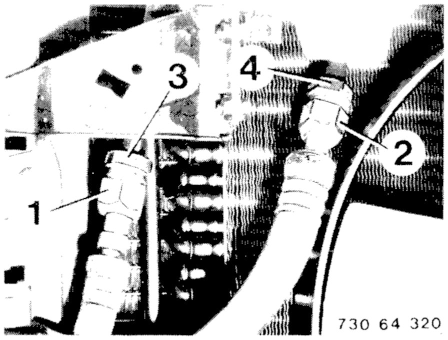 - Disconnect both coolant lines (1 - 2).