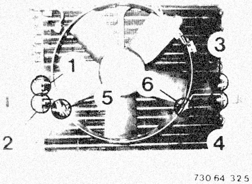 - Unscrew bolts (1 - 4) and take off brackets (5 - 6).