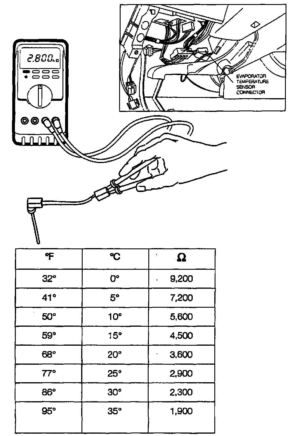 With the IHKS system, to check the evaporator temperature sensor, access the sensor by removing the lower trim panel and the instrument panel lower cover on the driver's side. Pull out the sensor and measure its resistance with a DVOM, or disconnect the evaporator sensor and measure its resistance, in place.
