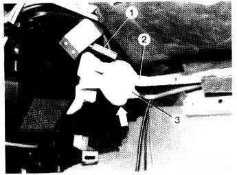 - Remove insulation. Discharge air conditioner. Detach refrigerant lines (2 and 3) at heater/air conditioner. Disconnect extra harness (1).