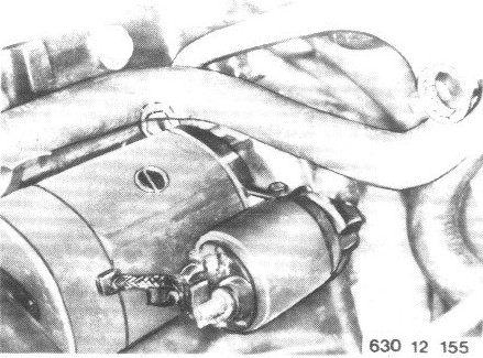 Disconnect wires on starter (terminals 30 and 50).