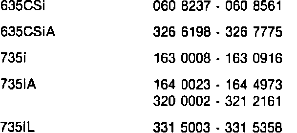 MODELS: E32 (735i), E30, E24, Equipped with M1.1 Fuel Injection - 1987 and 1988 Model Years (prior to 5.88 production)