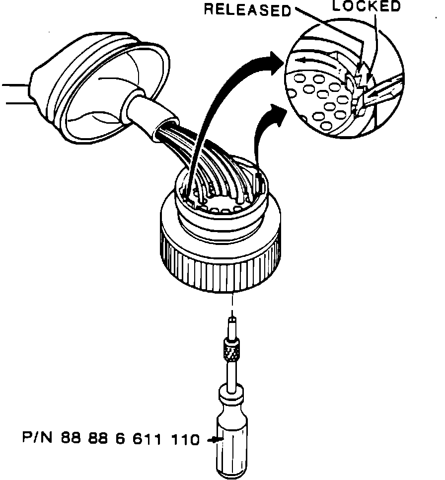4 - Release electrical pin latching collar by disengaging locking tabs and rotate collar counterclockwise. See illustration "A".