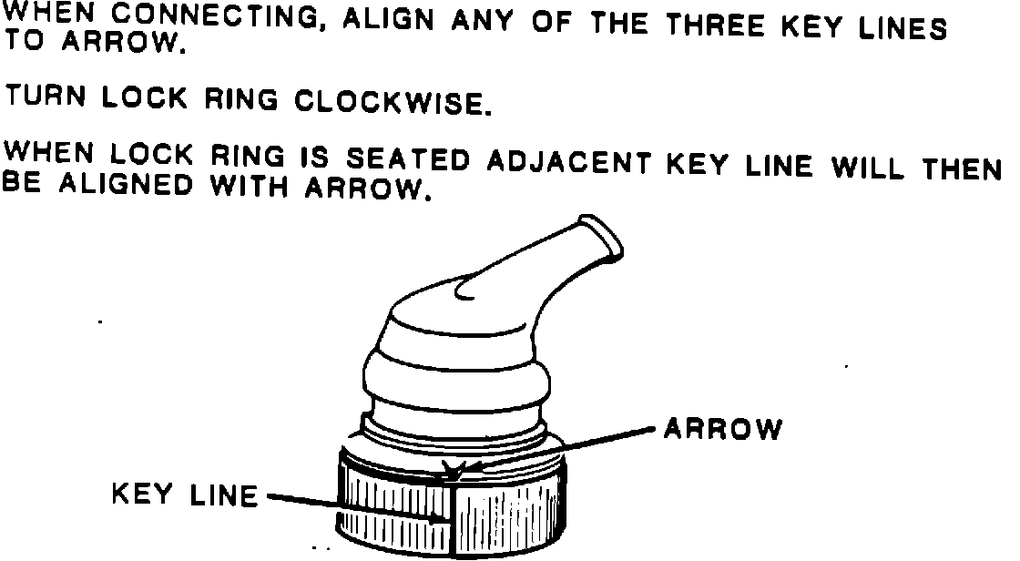 ^ rotate lock ring 1200 (1/2 of a turn) until a "click" is heard/felt. Ring is seated and locked when adjacent key line is aligned with arrow.