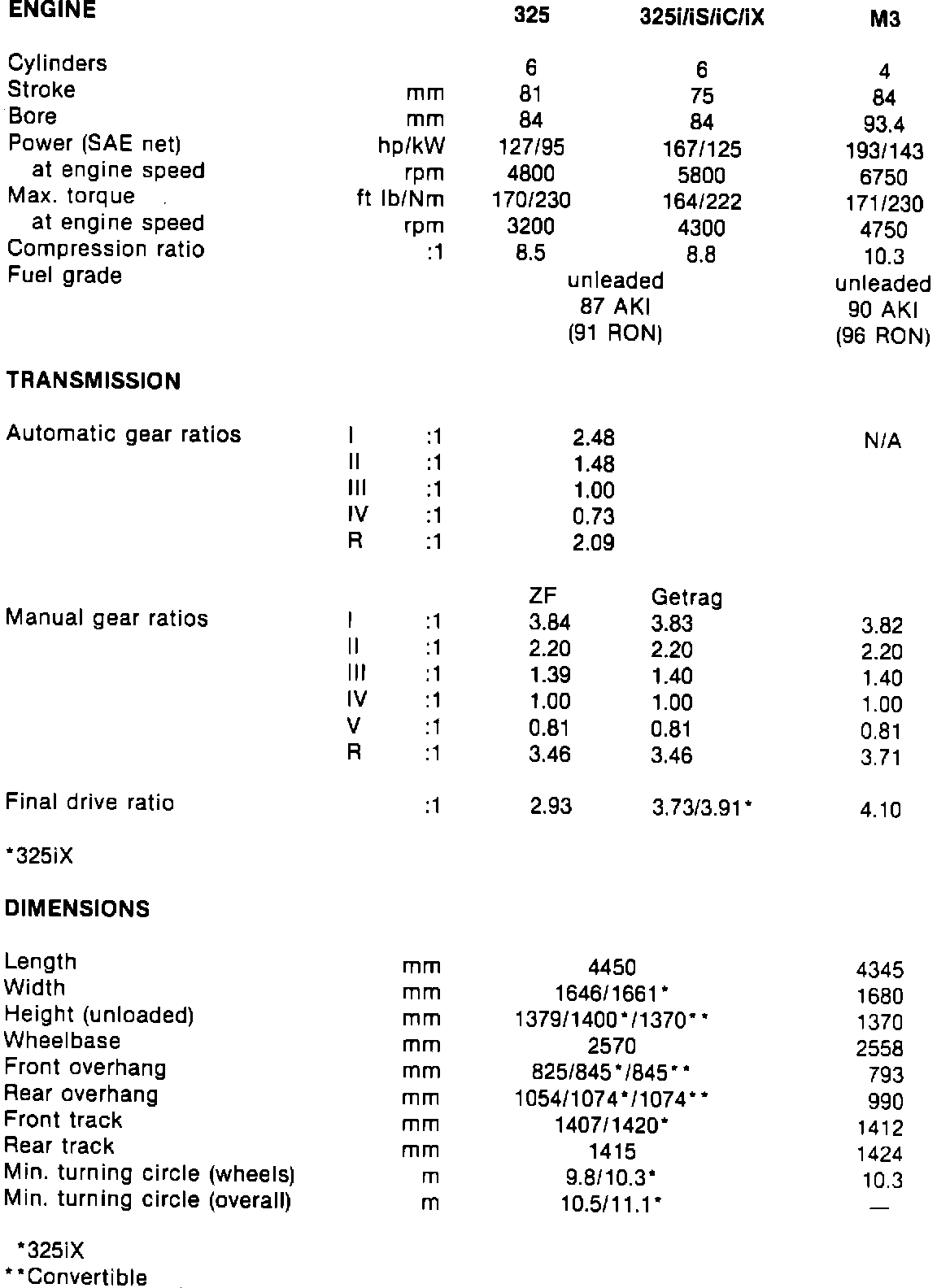 ^ Restyled and slightly larger taillight clusters (except Convertible/M3).
