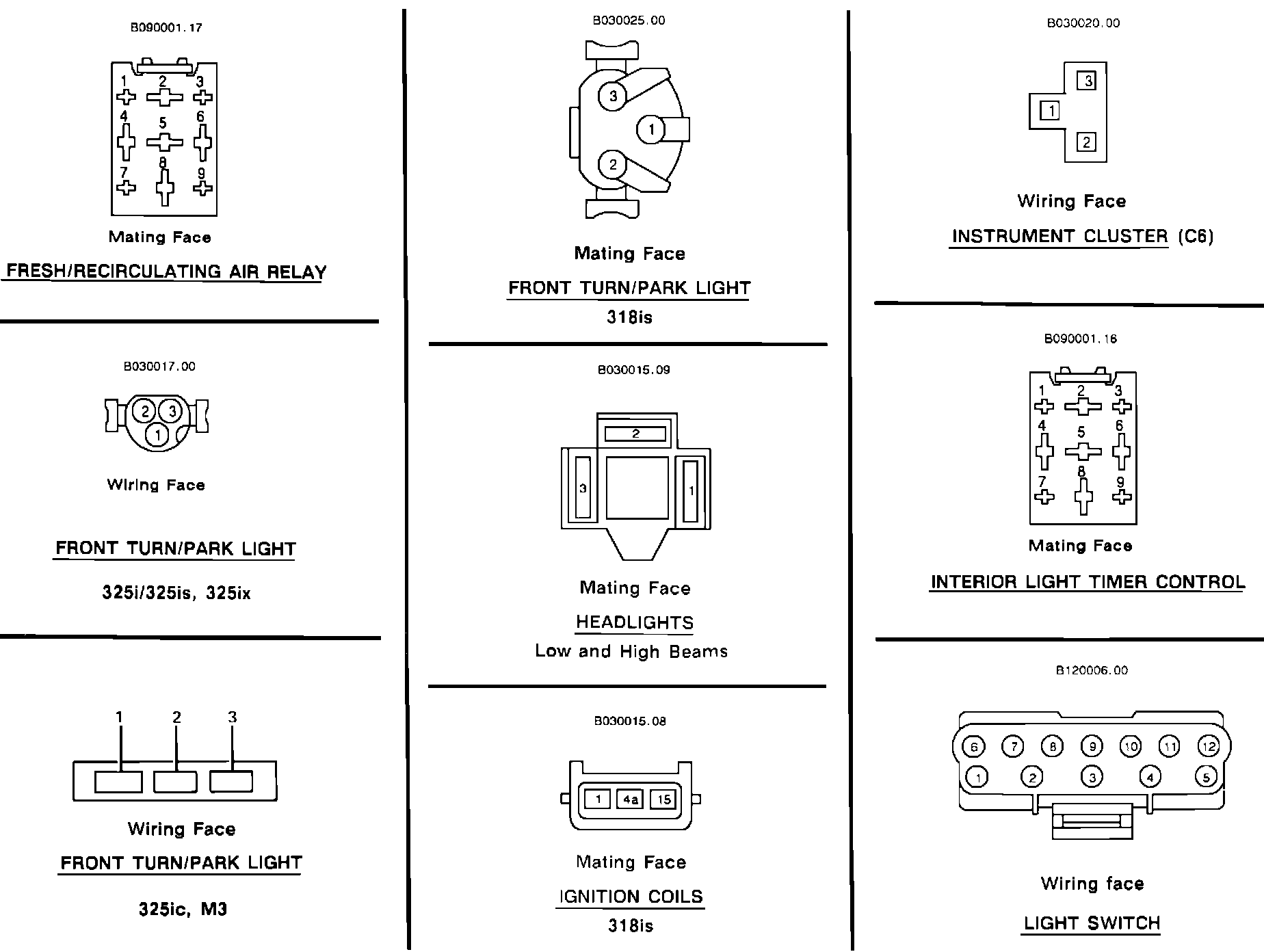 Connector Views: Fresh/Recirculating Air Relay Thru Light Switch: