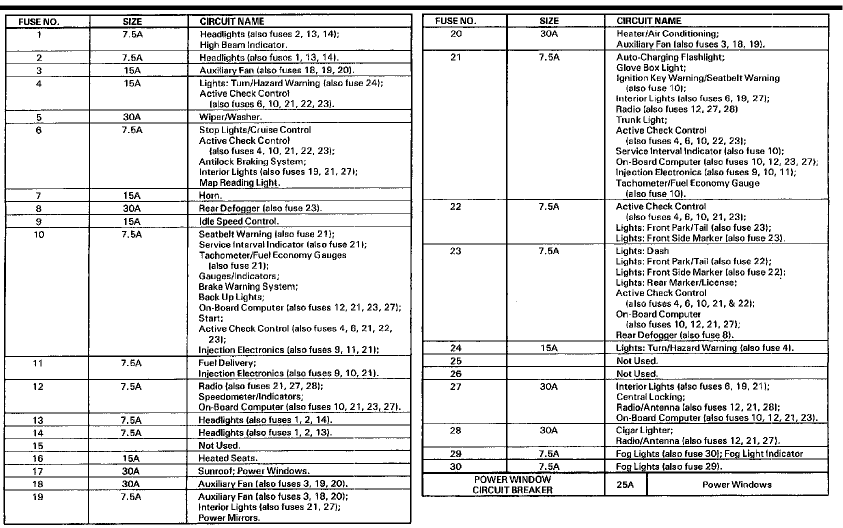 Fuse And Relay Positions In Distribution Box: