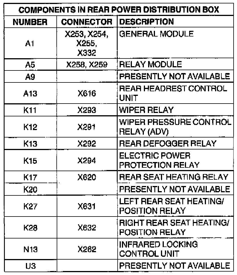 Components In Rear Power Distribution Box: