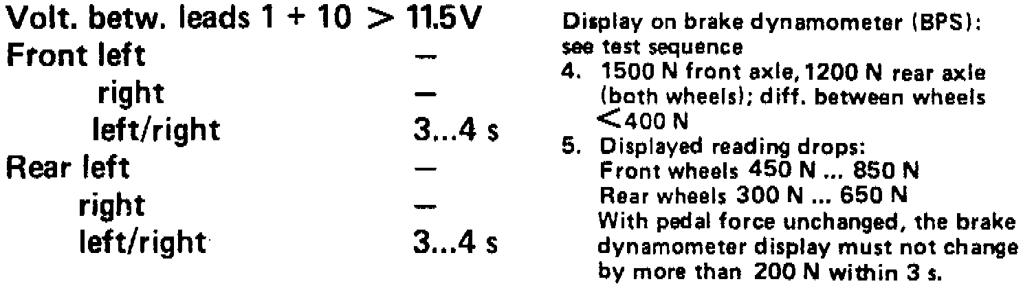 3. Switch "On" ignition; note voltage between leads 1 and 10. (If necessary run engine at idle speed.) Switch "On" brake dynamometer for both wheels.
