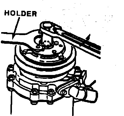 Note: Before removing clutch, determine that compressor is not seized by rotating clutch disc (attached to compressor shaft) either by hand or with holder P/N 88 88 6 645 020.