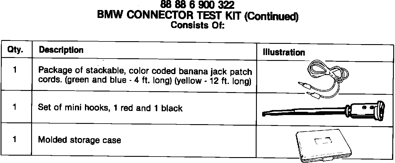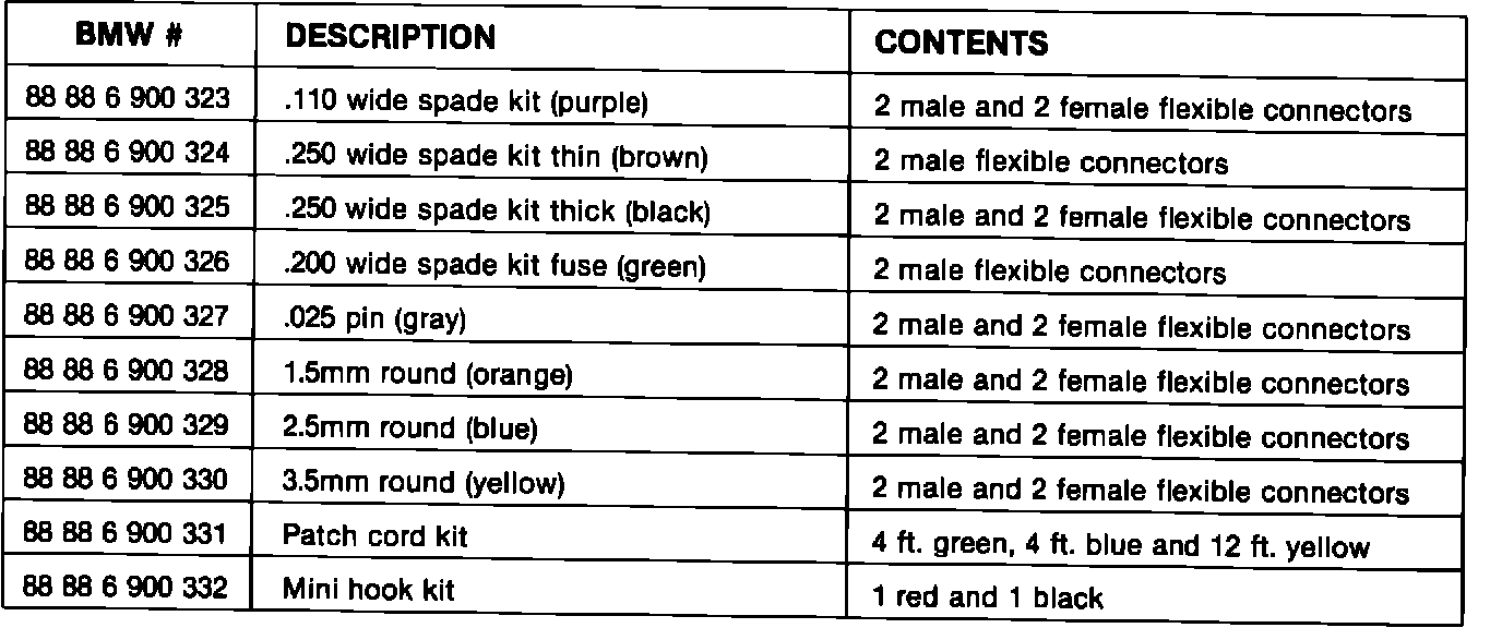 The result will be poor fit of this connector when reassembled. To prevent this possibility, BMW is pleased to announce the BMW Connector Test Kit (P/N 88 88 6 900 322).