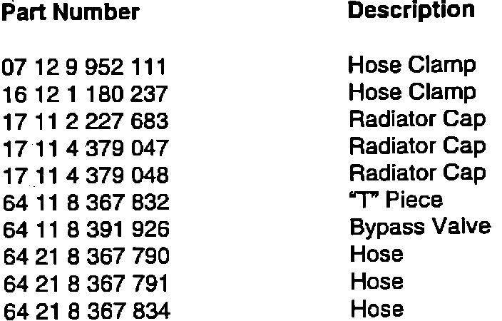 Update your E30 Coolant System Recall binders by removing S.I. 00 10 93 (3771) dated May 1993, and inserting copies of this S.I. 00 10 93 (3771) dated June 1993.