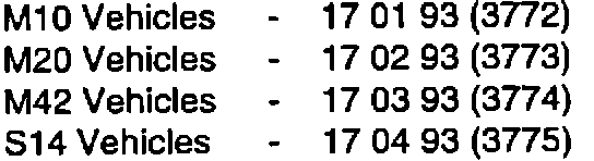 Service Information bulletin - Administrative Service Information bulletin - M10 modification M10 chassis number range listing Service Information bulletin - M20 modification M20 chassis number range listing Service Information bulletin - M42 modification M42 chassis number range listing Service Information bulletin - S14 modification S14 chassis number range listing