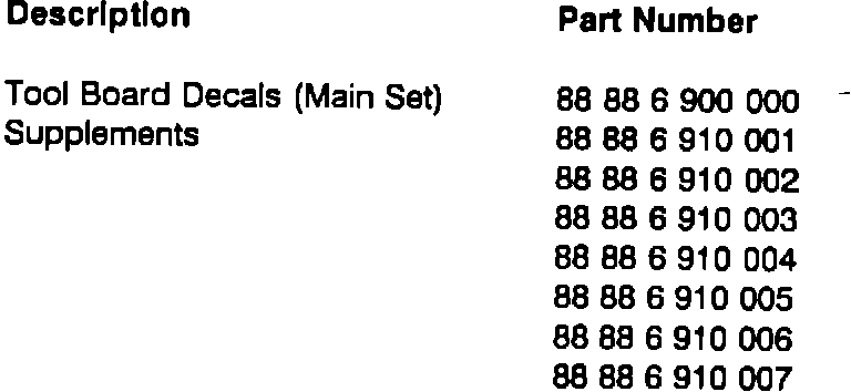 Situation: Dealers who wish to order a complete new set of tool board decals must order the following part numbers:
