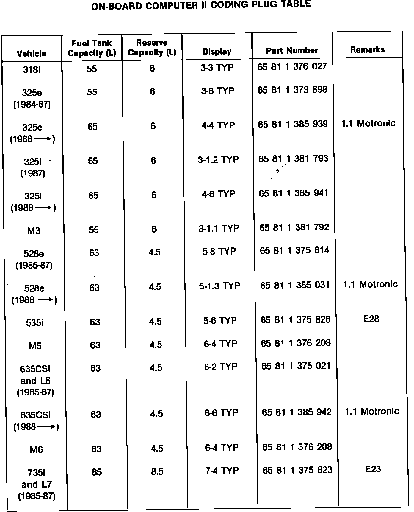 This Service Information bulletin supersedes S.I. 65 07 87 (1446) dated August 1987. It updates the coding table.