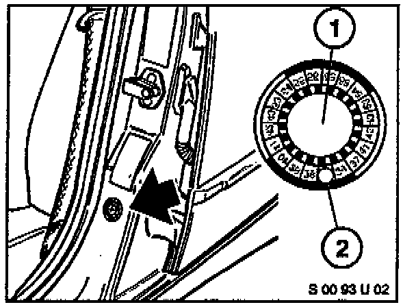 a) Emboss your BMW dealer warranty number in the middle of the label (1).