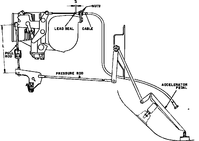 2. With engine off and throttle lever against stop, check clearance ``S'' between throttle cable stop (5) and end of cable housing (6), Fig. 2.