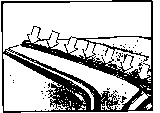 Replace corner seals, and roughen the surface of the seal slightly (where glued) with sandpaper to assure a good bond. Use BMW P/N 81 22 9 407 533 glue, taking care to glue edges (arrows) firmly in place.