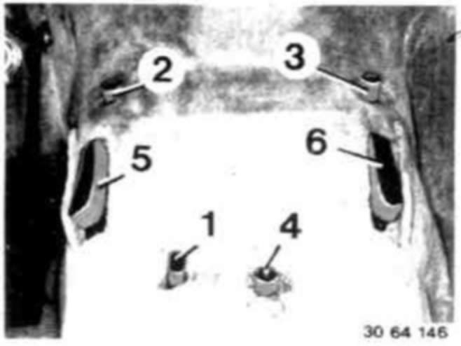 - Check rubber mount (4), replacing if necessary.