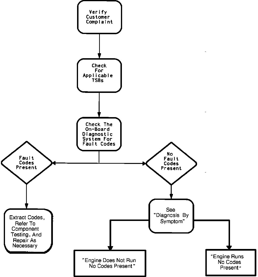 3. Refer to ON-BOARD DIAGNOSTICS for fault code extraction. Be sure to review CHECKING THE BASICS.
