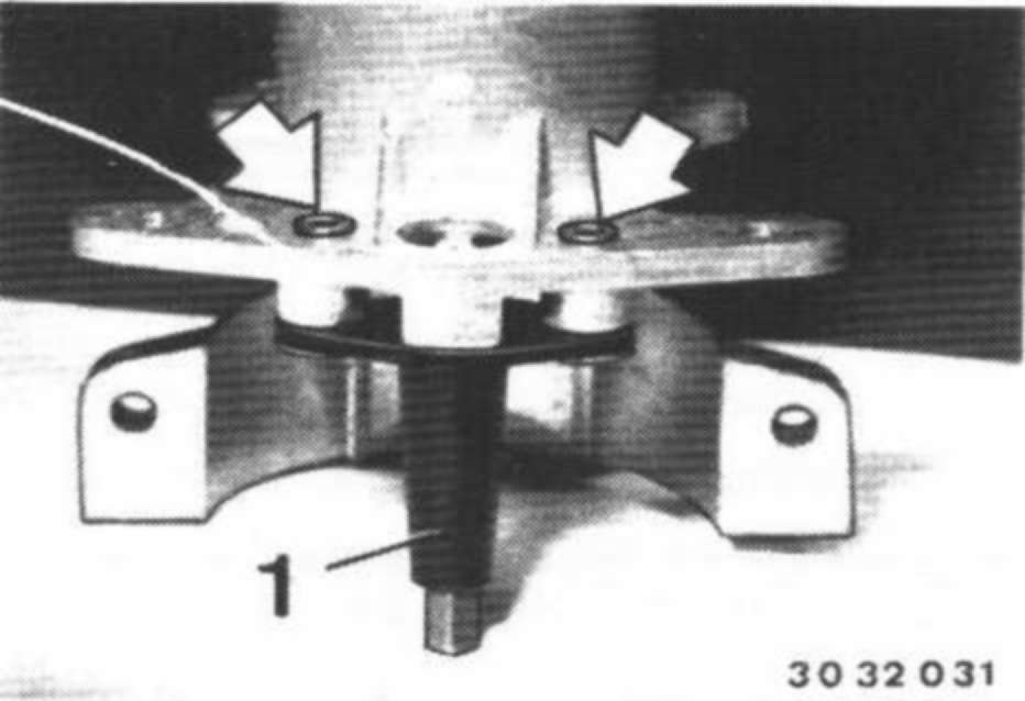 - Install snap ring (1) with Special Tools 32 3 052 and 32 3 050 (hammer knock).