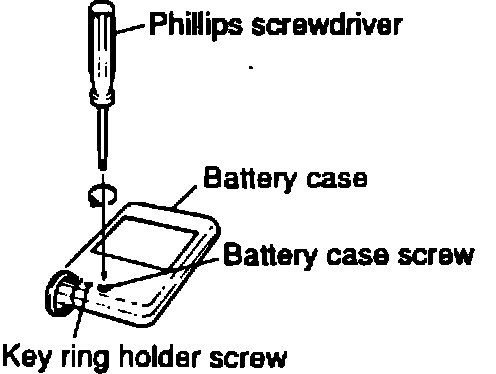 1. Place the transmitter on a flat surface with the button facing downward. Use a Phillips head screwdriver to remove the battery case screw.