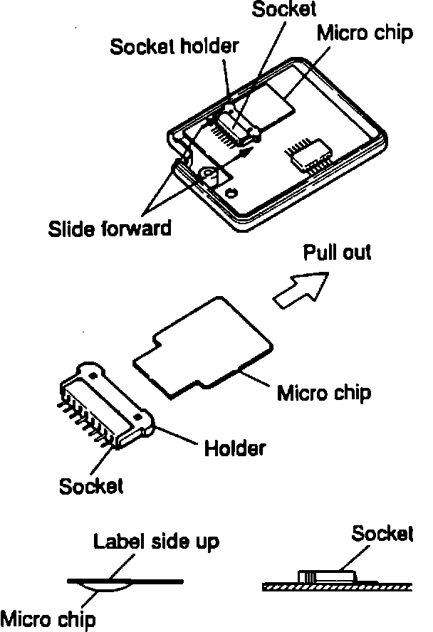 4. Insert the replacement chip (with label side up) into the socket. Push the socket holder back to secure the chip.