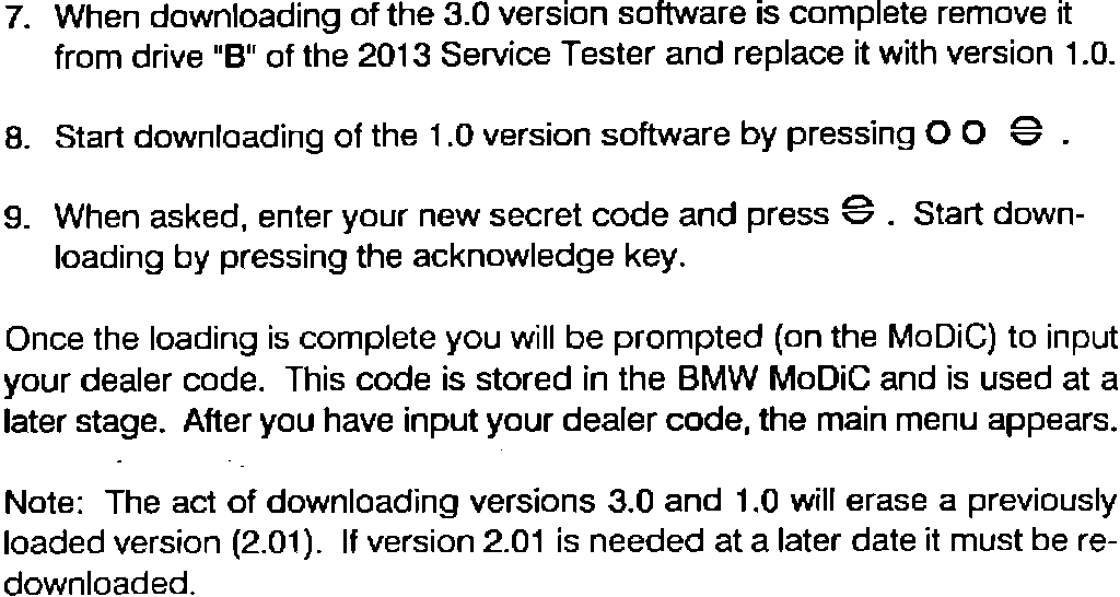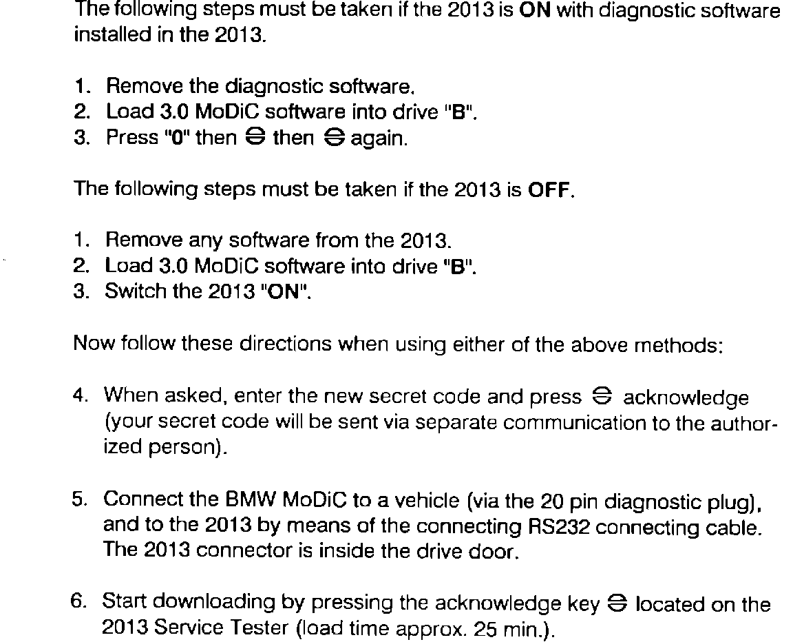 3. New updated software has become available. When ordering a MoDiC, the order form (available from the BMW Product and Service Engineering Department) has a space for the name of your authorized person. The secret access code will be sent to your authorized person via a separate communication.