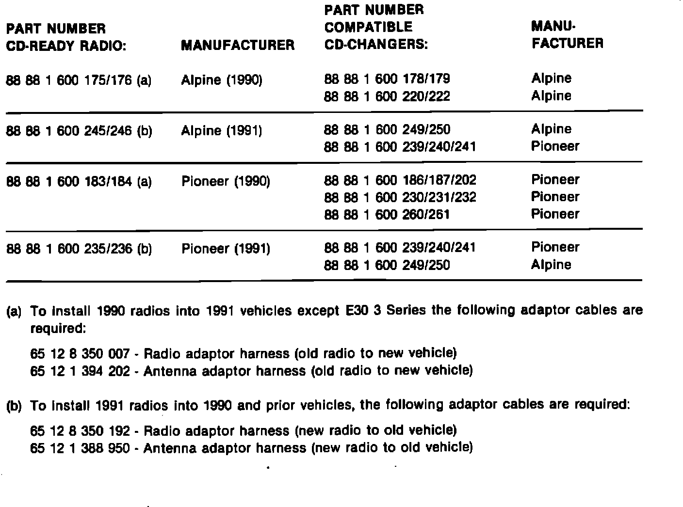 Radios/CD Changers - Compatibility Chart