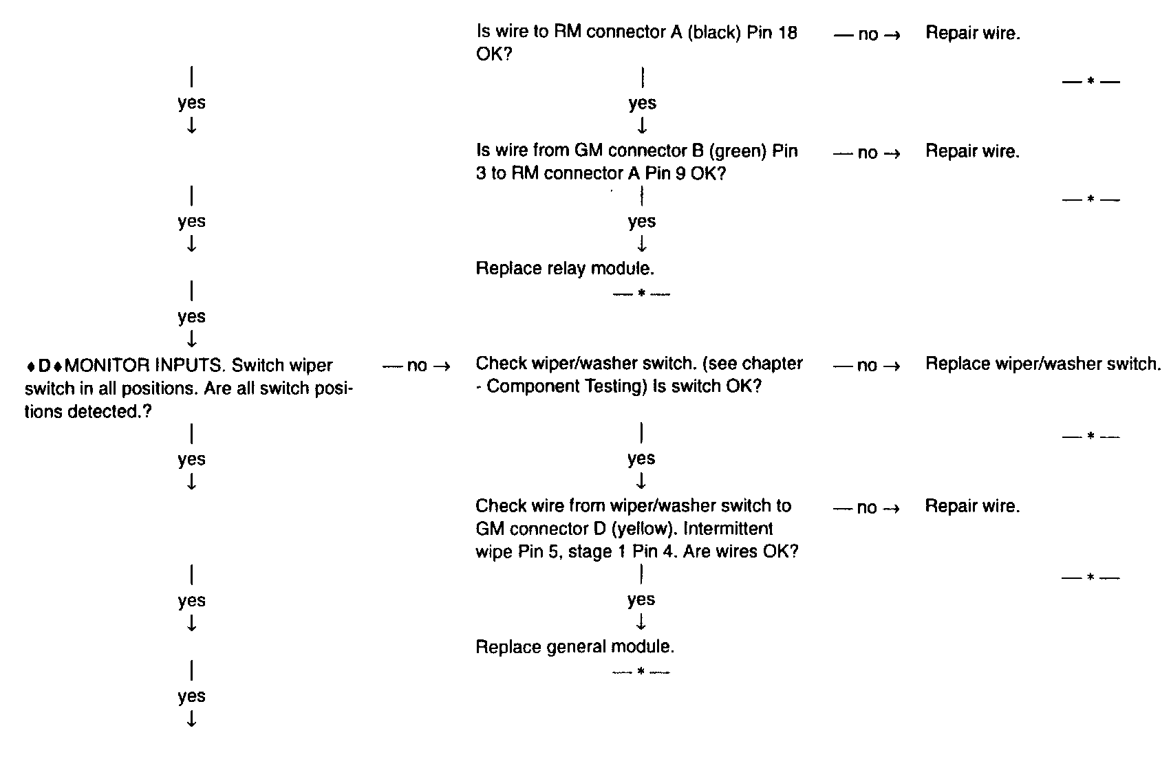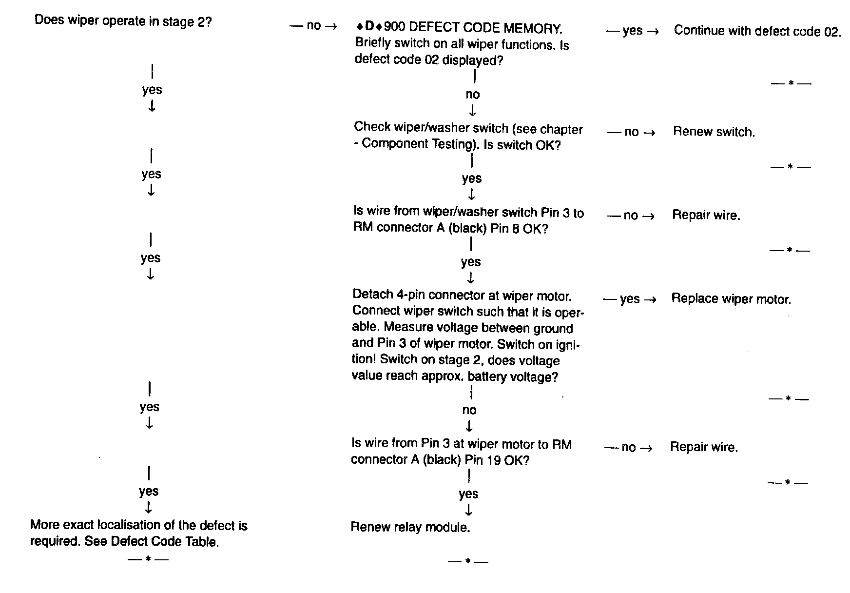 Possible cause: Wiper/washer switch, wiper motor, wiper relay in RM, corresponding wires