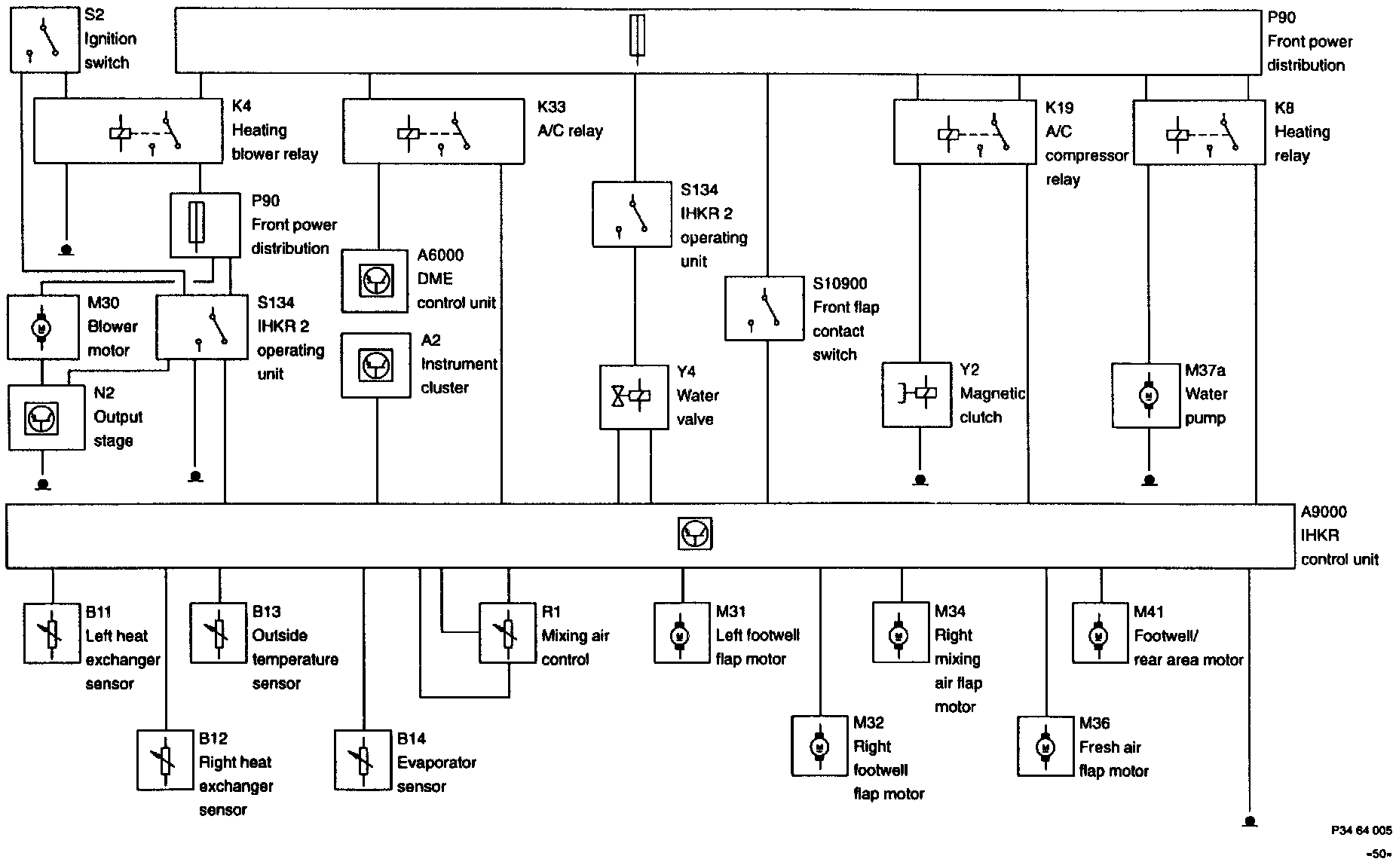 The automatic climate control system (IHKR) is a water-based automatic heating and air conditioning system. The control system on the water side is based on two electrically operated water valves in separate heat exchangers on the left and right sides.