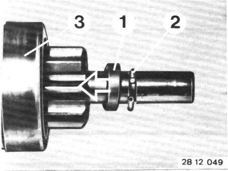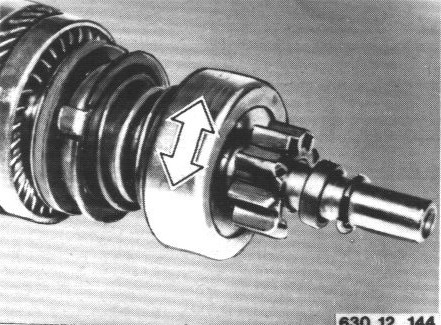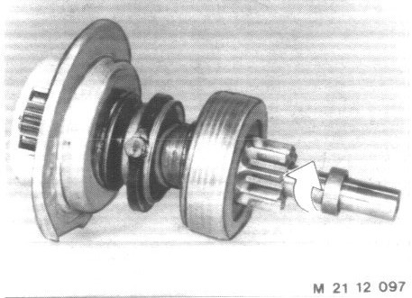 Turn drive pinion against the stop. The pinion can be turned very easily when the one-way clutch is worn excessively.