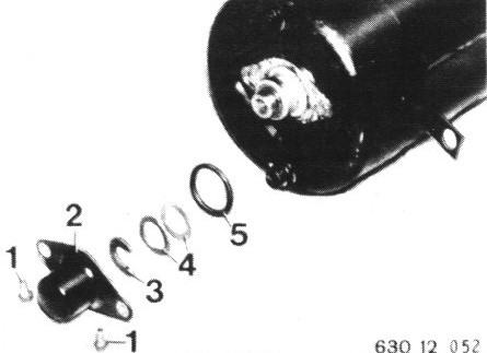 Take oft circlip (3), shims (4) and seal (5).