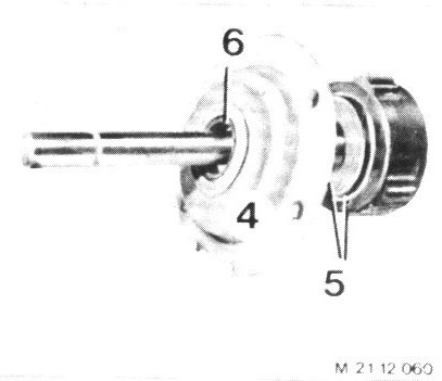 Take off bearing cover (4) and washers (5).