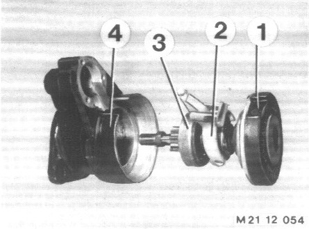 Pry circlip (2) apart and pull it off at the shaft.