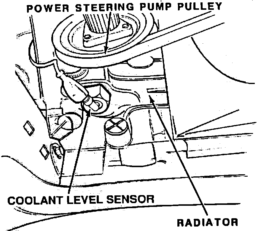 The coolant level sensor is now located on the left underside corner of the radiator (see illustration), just forward of the power steering pump.
