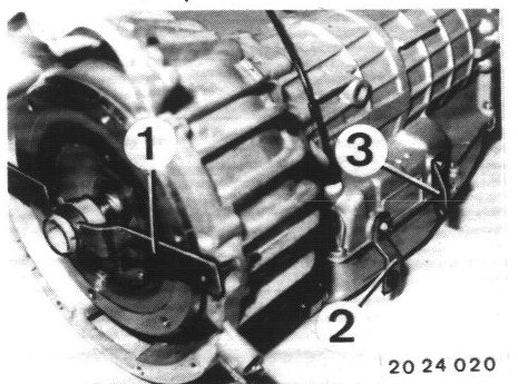 After a test drive and with transmission oil temperature of approx. 40°C (105°F)the oil level should not be below ball (1).