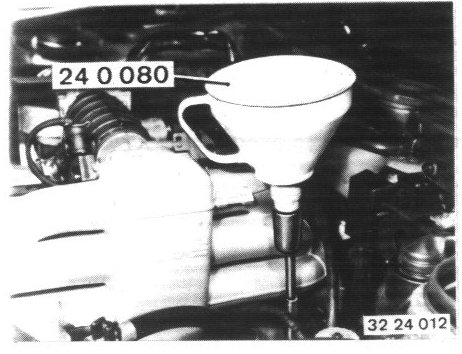 - Pour in ATF again with help of Special Tool 24 0 080 (funnel) after installation of the transmission.