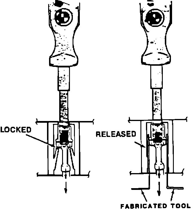 If this occurs, insert two additional interim tools in the bottom of the multiplug as shown to release the retaining fingers.