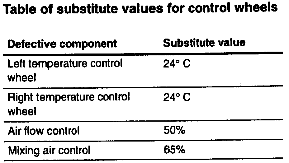 ^ In order to achieve a uniform output status when monitoring and storing the defect codes, the IHKA must be switched on with the air flow control wheel. If, despite the IHKA being switched on, the air flow control wheel displays control wheels "OFF" in the D Status list (function lights of program buttons do not light), check the power supply from the control unit to the control wheel potentiometers in the operating unit.